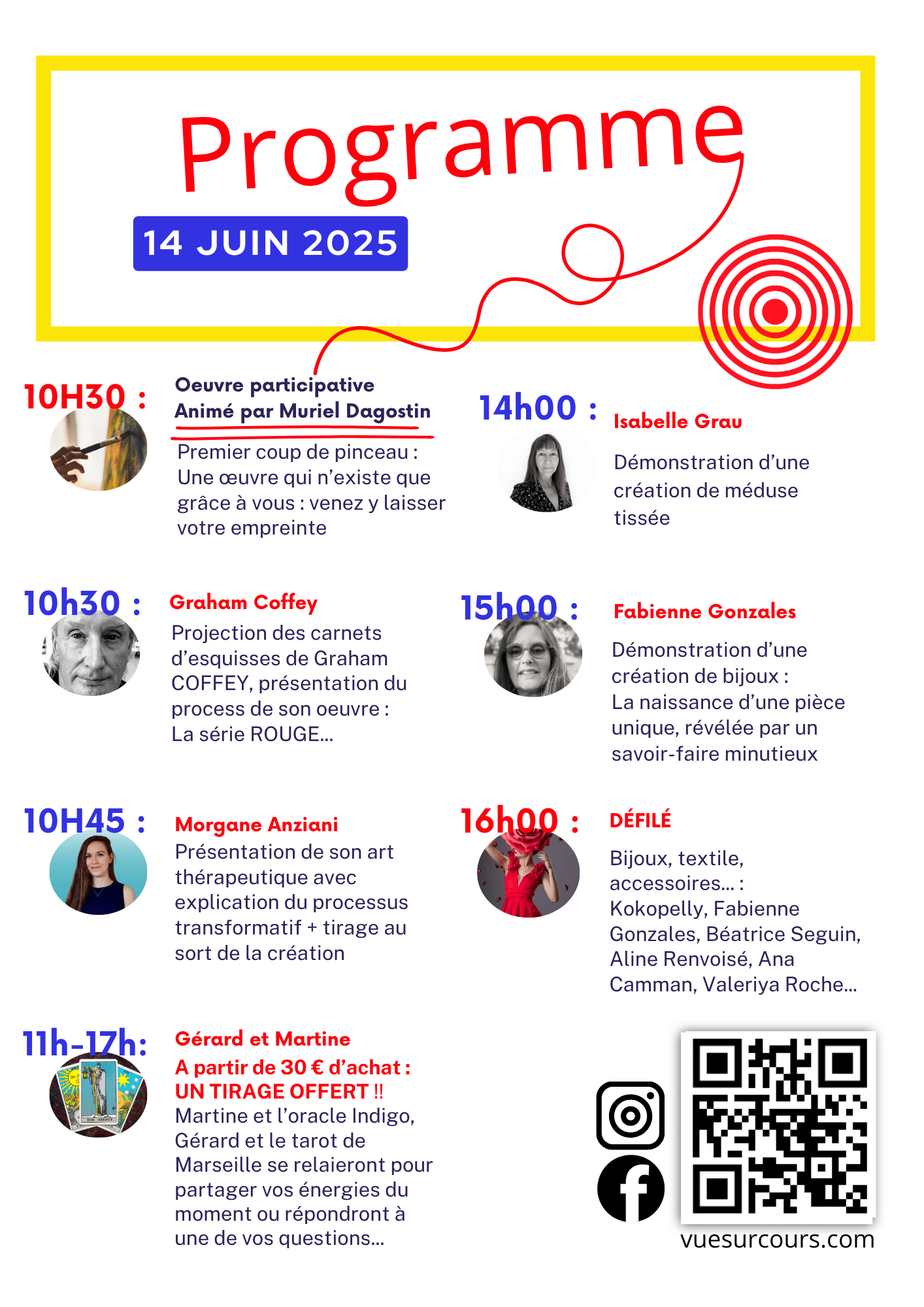 Préparez-vous à vivre une journée immersive, vibrante et conviviale, où l’art s’expérimente sous toutes ses formes.